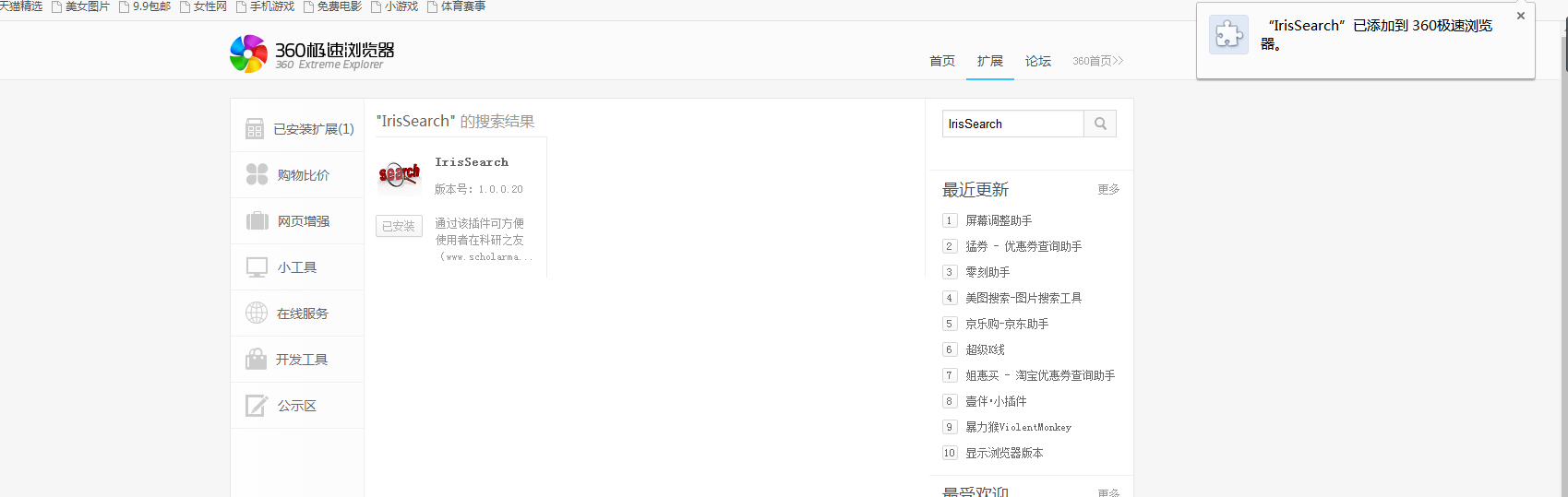 (2) 点击安装检索插件按钮,跳转到360组件下载商店。